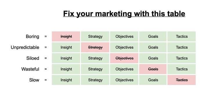 Boring marketing happens when you sound just like everyone else. If you don’t have unique insights or your own narrative, things will continue to sound and feel bland.