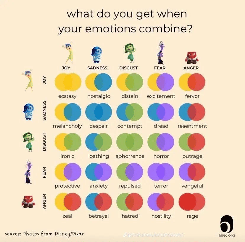 Here’s a cool graph that shows what you get when you combine basic emotions. Use this to help you drill down into more specific emotional targets. Then, try to draw these out of your audience.