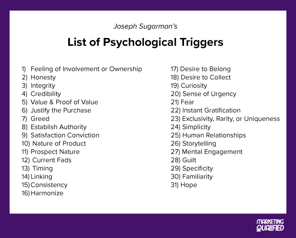 31 "psychological triggers" that convince people to buy stuff. A breakdown of some of our favorites from copywriting legend Joseph Sugarman.