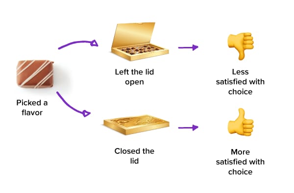Participants who ate their chocolate or drank their tea while staring at the other flavors they could have tried questioned their decision and ultimately reported a lower level of satisfaction.
