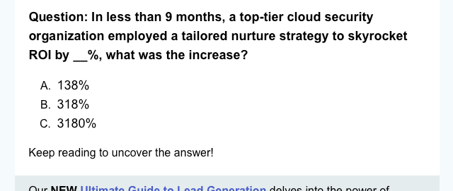 Use a multiple-choice question to hook the reader, then make them read further into the email to get the answer.