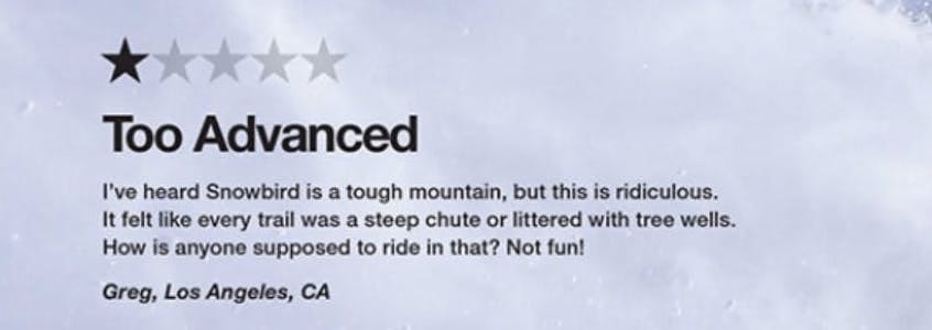 This reviewer complains that the mountain was “too advanced” for him. Which actually makes it more desirable to advanced skiers.