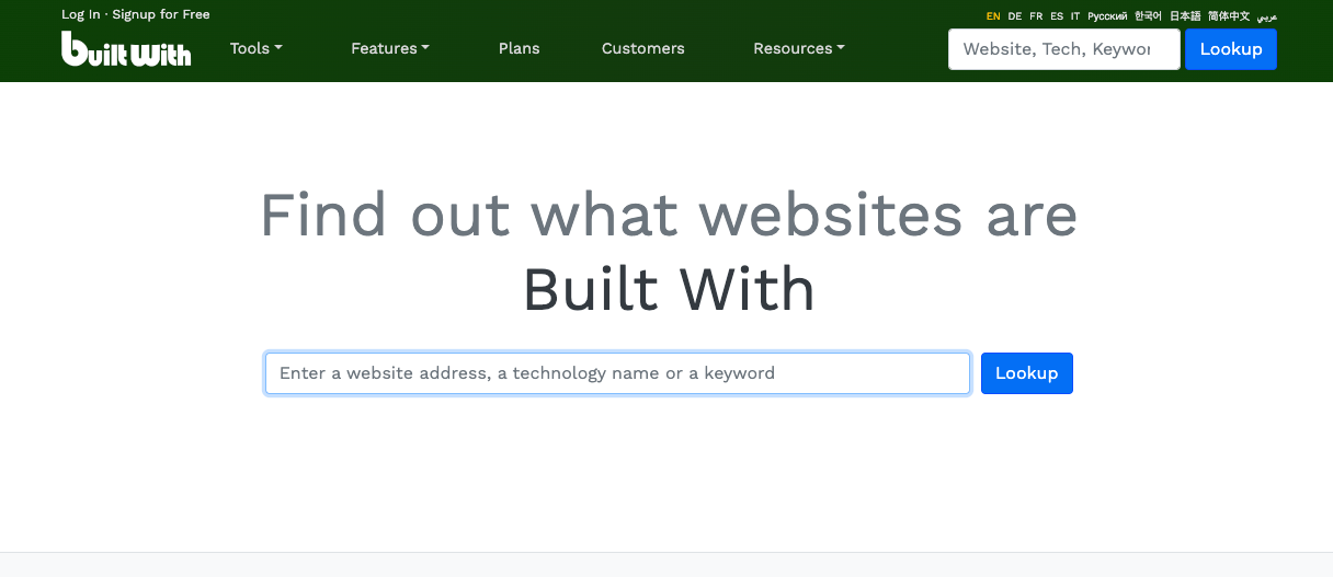 Go to BuiltWith and enter your competitor’s website.