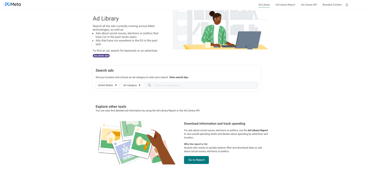 Head over to Meta ads library and ads transparency on Google.