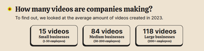 On average, small businesses make one video every 24 days, medium businesses make one every 4 days, and large businesses make one every 3 days.