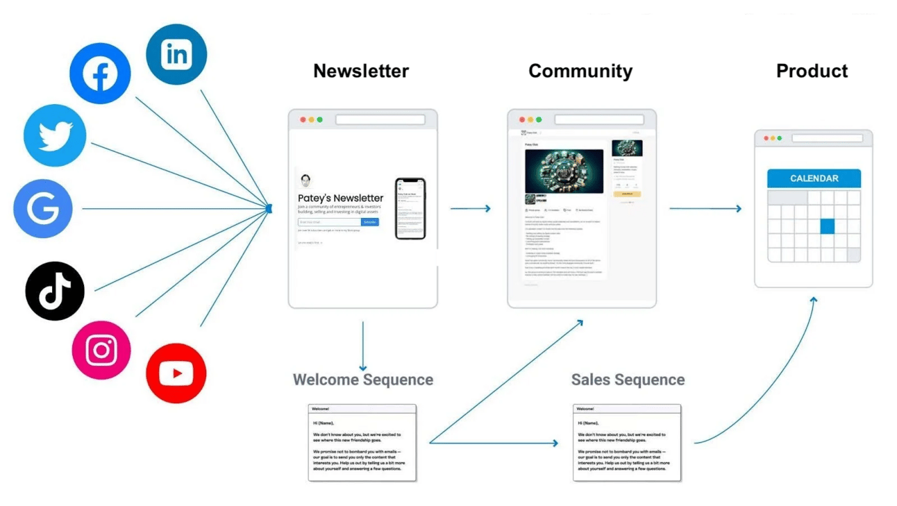 But with the community funnel, you at least have some leading indicators of whether audience members are moving closer to a sale. You’ll be able to track how your social following, newsletter subscribers, and community member metrics are growing. If people are progressing through, you’re probably close to closing some deals.