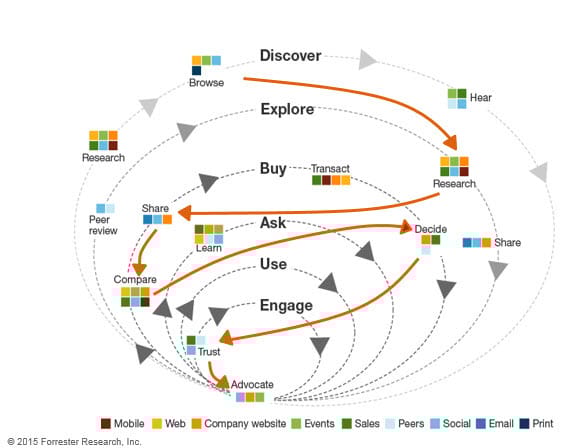 Forrester did a study and found that B2B buyer behavior looks more like this: