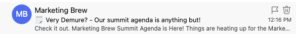 This subject line from Morning Brew references the “very demure” trend currently going viral online.