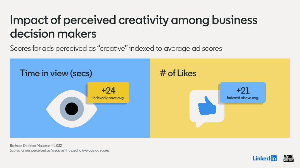 Most recently, LinkedIn partnered with MAGNA Media Trials on a study. Their goal was to uncover how creativity can help support both brand and bottom line growth.