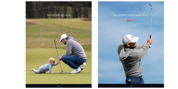 The ad features pro golfer Scottie Scheffler with his son after his recent Open Championship victory.